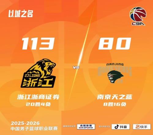 2025-26賽季CBA聯(lián)賽常規(guī)賽第24輪,球隊(duì)作客杭州挑戰(zhàn)浙江浙商證券隊(duì)。首節(jié)開(kāi)戰(zhàn),塔克、馬內(nèi)克對(duì)轟三分幫助各自球隊(duì)拿到馬年首分。漢茲搶斷造成對(duì)手犯規(guī),昊文卷切上籃得手。胡金秋內(nèi)切上籃,馬鑫鑫內(nèi)傳內(nèi)助攻李斌卓空切上進(jìn)。胡金秋持球強(qiáng)攻,馬內(nèi)克三分線外再度開(kāi)火。郭昊文三分線外一步遠(yuǎn)射也有,卡爾頓禁區(qū)打成2+1。漢茲持球干拔三分,林秉圣中距離跳投,祝銘震點(diǎn)起防守三分再中。塔克弧頂三分開(kāi)火,朱俊龍兩罰全中。馬內(nèi)克從天而降完成補(bǔ)扣,塔克弧頂三分再中。林秉圣、趙柏清先后命中兩罰,郭昊文底角無(wú)人看守笑納三分。林秉圣單兵突破打成2+1,鄔挺嘉突破助攻馬內(nèi)克上反籃得手。桑普森接連造成犯規(guī),罰球取分,漢茲持球突破打板上籃。桑普森中距離跳投,首節(jié)結(jié)束,浙江浙商證券31-30南京天之藍(lán)。